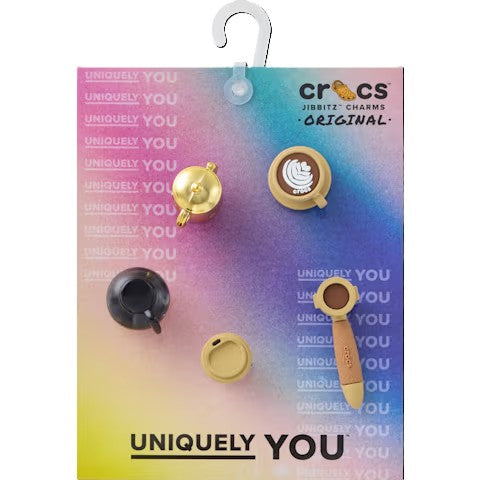 Pop some personality into your shoes with the S3D Coffee Set 5 Pack of Jibbitz™ charms. It's the perfect addition to your favorite clogs, slides, sandals, bags, and more.