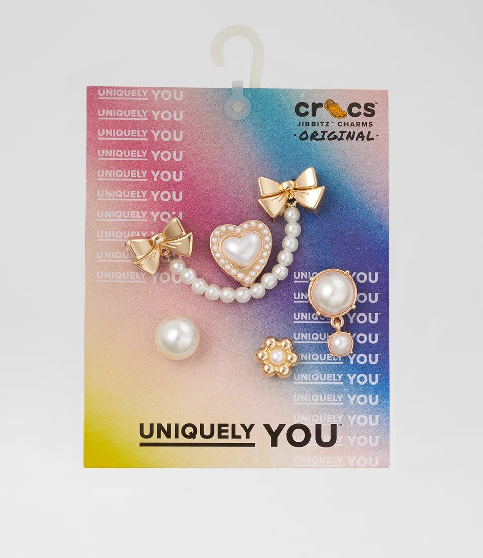 Pop some personality into your shoes with the Pearly Gold 5 Pack of Jibbitz™ charms. It's the perfect addition to your favorite clogs, slides, sandals, bags, and more.